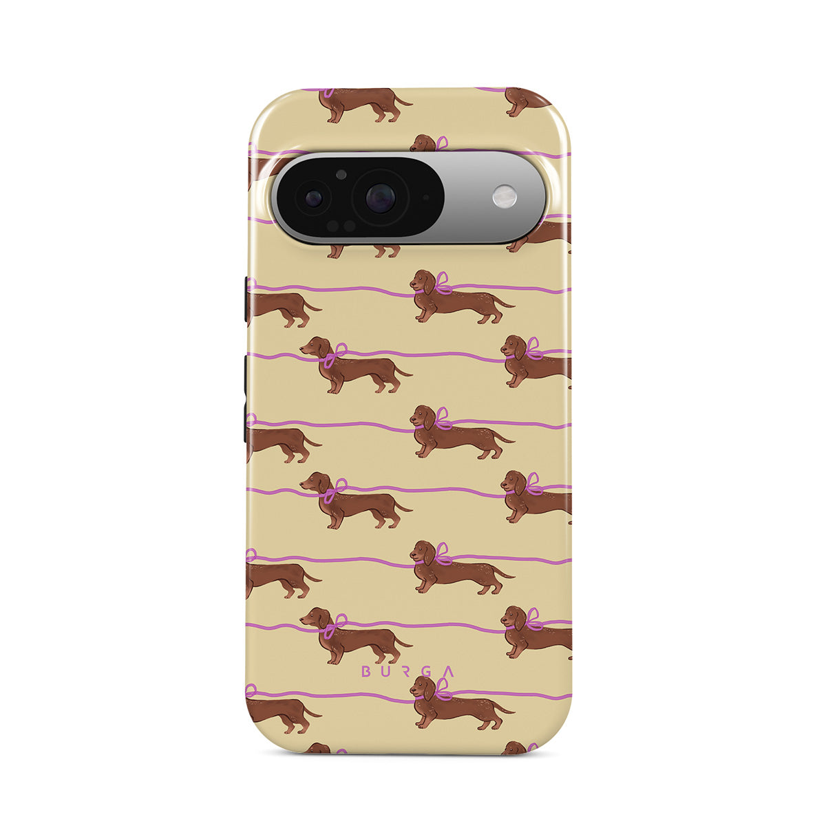 This Google Pixel 9 phone case design doesn’t believe in time, only vibes. It features sassy sausage dogs with bows who, like you, are running 15 minutes behind—and blaming Mercury.