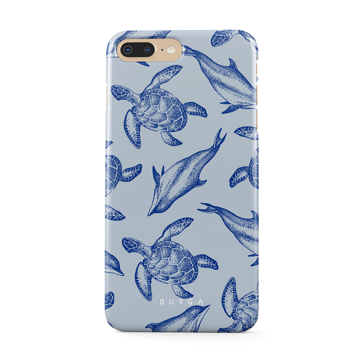 A beautiful design featuring lively turtles and dolphins playfully dancing in serene light blue water. Dive into the ocean's rhythm with our Aquatic Dance iPhone 7 Plus / 8 Plus case.