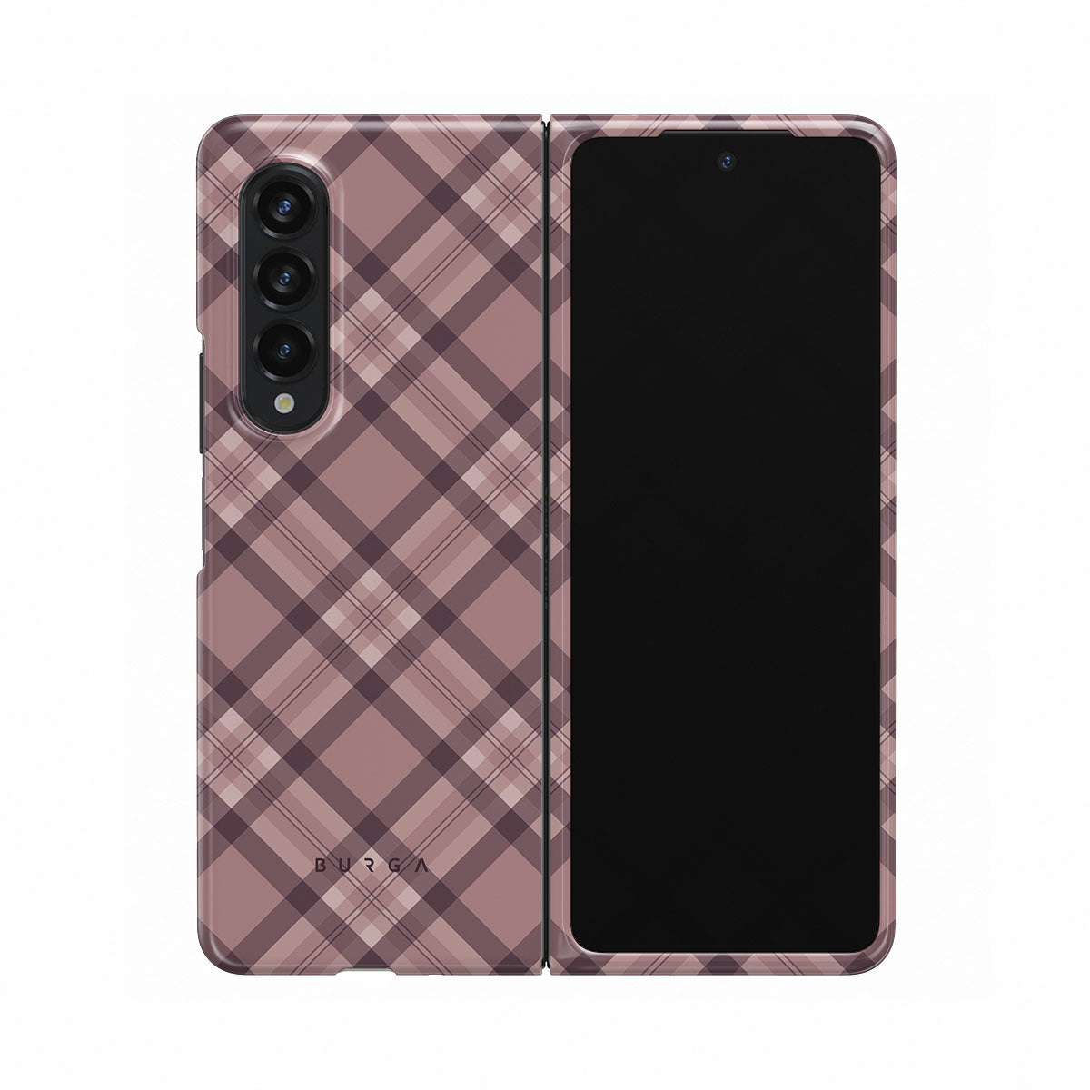 Made for those who hustle hard and look sharp. Our ASAP Samsung Galaxy Z Fold 3 phone case design features a sleek rosé-gray background with diagonal plaid in soft grey and deep pink—mixing modern flair with understated elegance. For the pros who know that style and speed go hand-in-hand.
