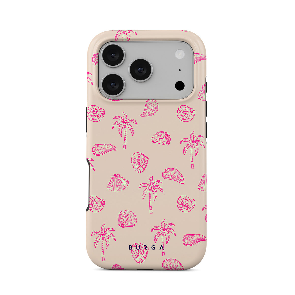 Lovely, beachy, and pink is what we can say about our Beach Please iPhone 17 Pro phone case design. The playful pattern of palms and seashells will look cute in your summer selfies. Add that playful touch to your everyday life and keep your phone safe from scratches the sand can make!