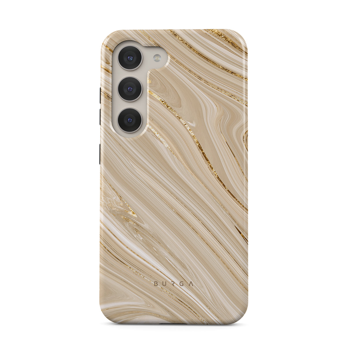 The Full Glam Samsung Galaxy S23 Plus phone case exudes elegance and softness in the beige color scheme with golden accents. The delicate design of the phone case will enhance your style and keep your phone safe and sound while doing that.