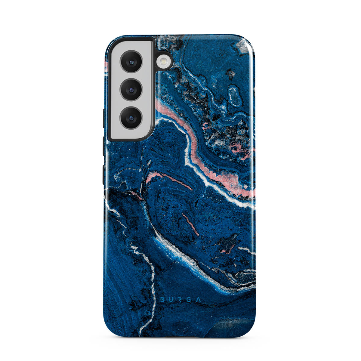 Electric indigo blue meets white, and pastel pink swirls in a unique marble pattern in our Blue Lagoon Samsung Galaxy S22 phone case. The modern take on a blue marble trend will look aesthetically pleasing on your device while offering durable protection from any falls.