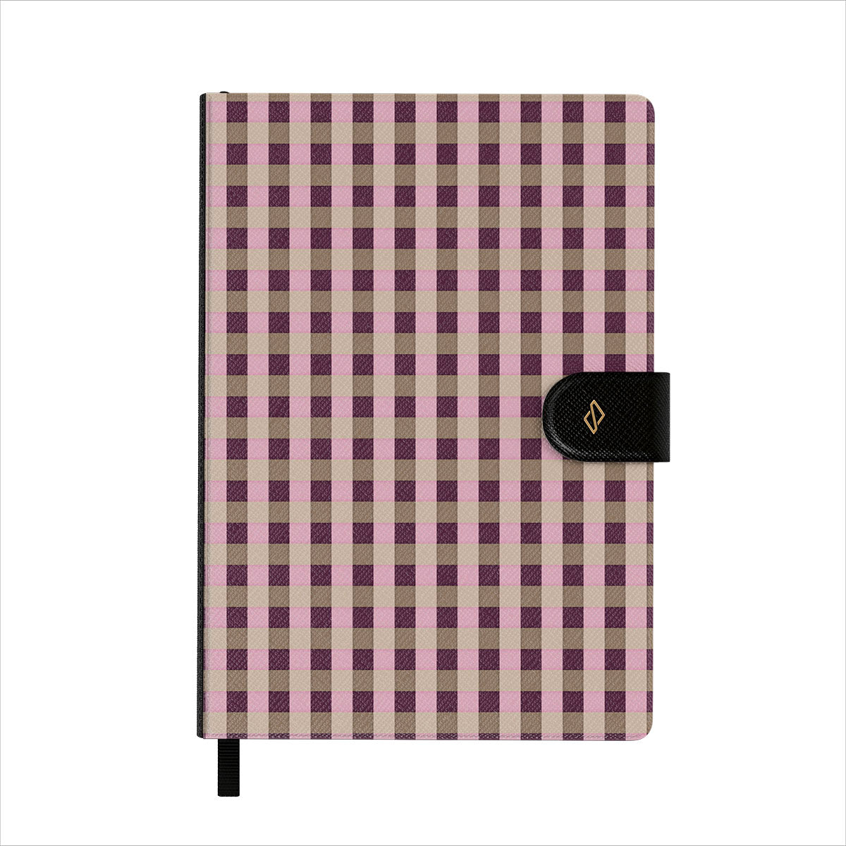 This design features: pink and burgundy plaid pattern, modern checkered style.