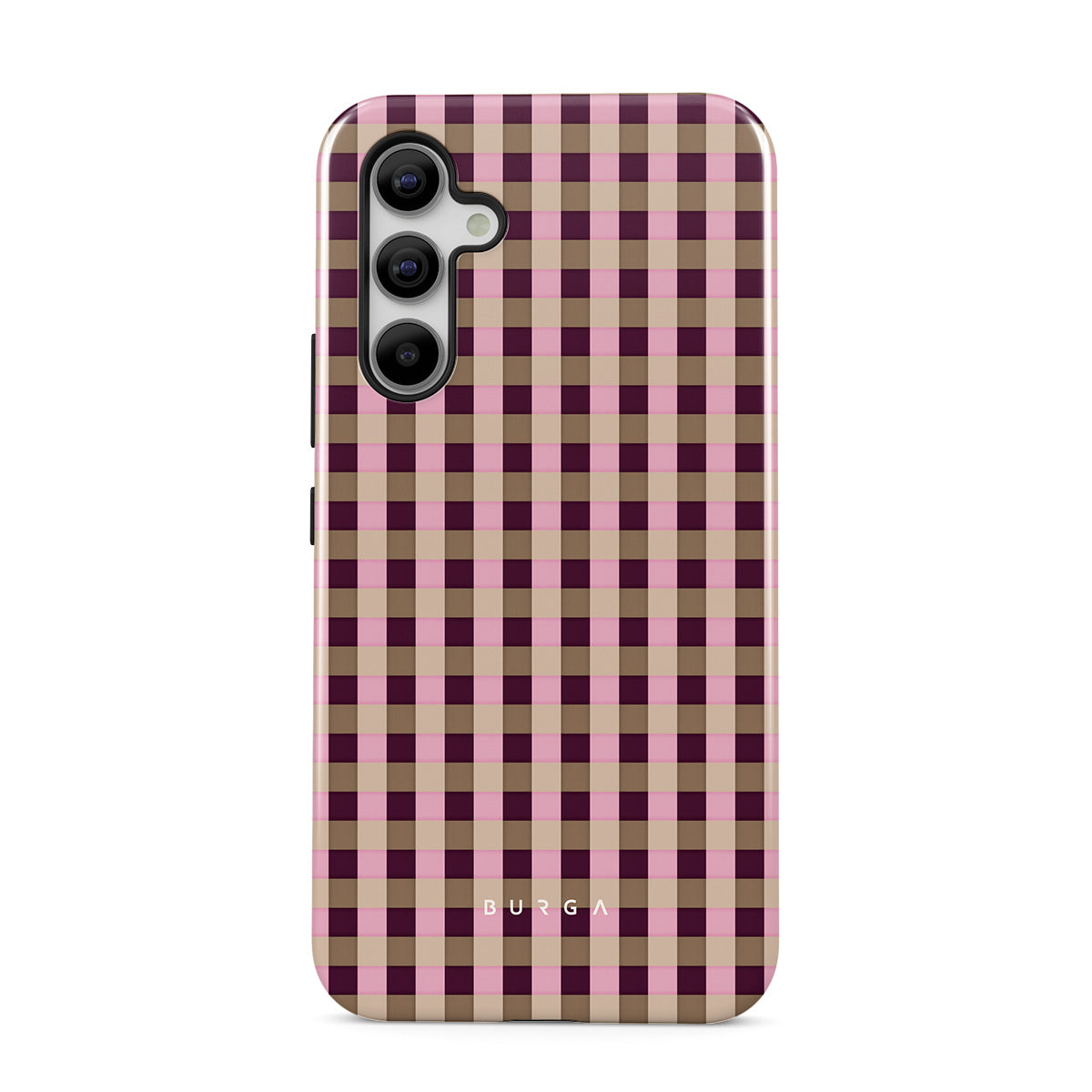 This design features: pink and burgundy plaid pattern, modern checkered style.