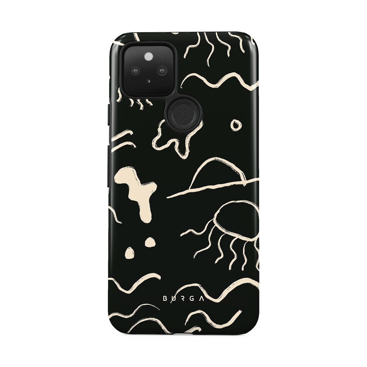 Our Eclipse Google Pixel 5 design reflects the enigmatic beauty of the ocean during a solar eclipse. The dark hues and bright accents represent how the light dances on the water, while the waves and jellyfish capture the serene yet dynamic nature of the ocean.