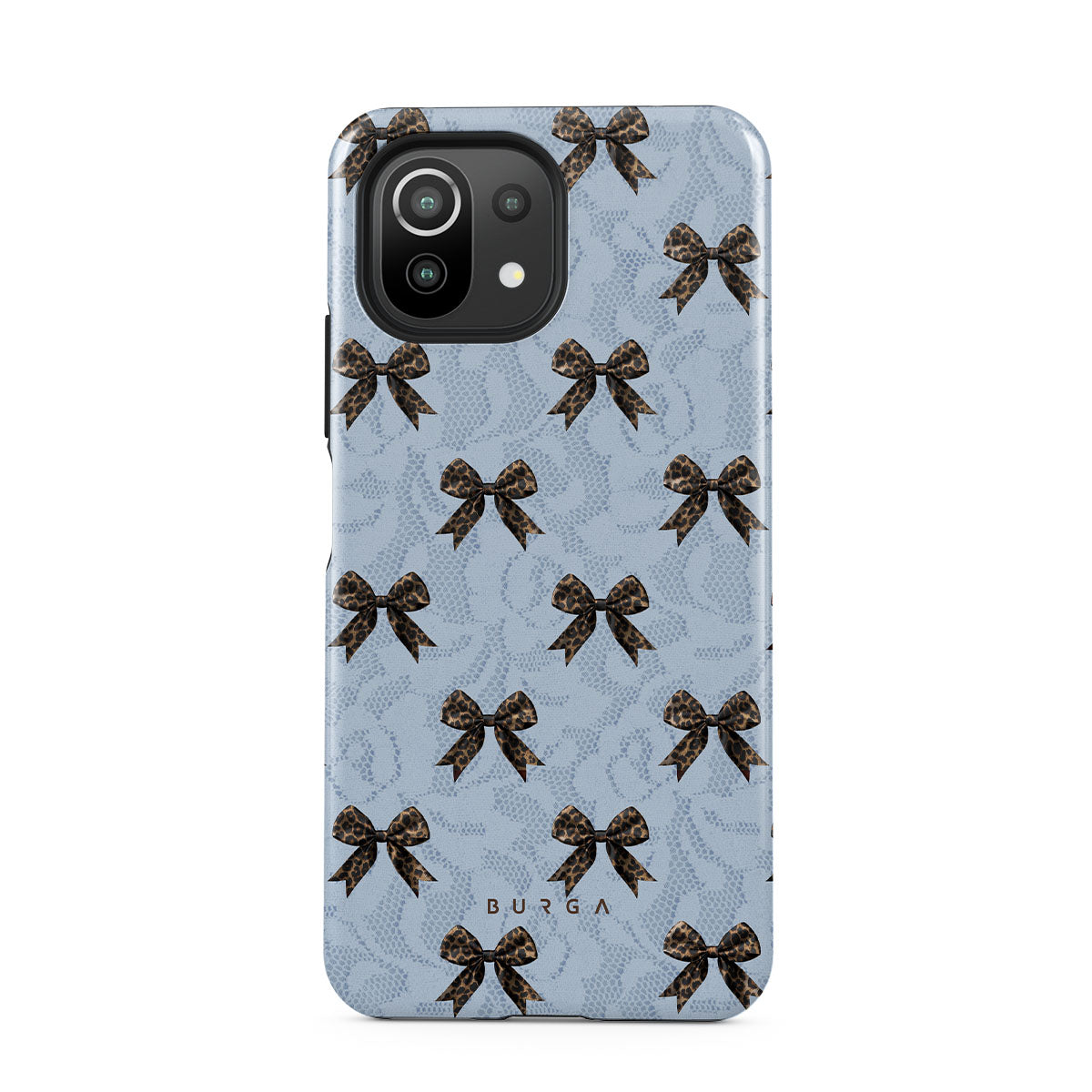 For those who command attention with subtle elegance, our Fashionista Xiaomi Mi 11 Lite 4G / 5G phone case design is your go-to. A soft blue background, accented by dark grey bows and subtle lace patterns, exudes polished, effortless style. It's quiet confidence with a hint of charm.