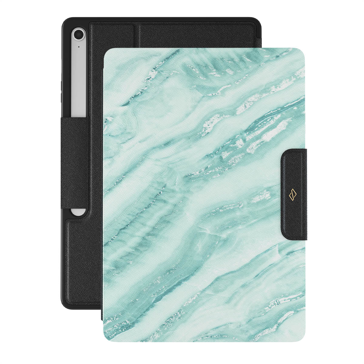Add freshness to your style with our Fresh Breeze Samsung Galaxy Tab S10+ FE folio case. The soft cyan color of the case is emphasized in a unique marble pattern. Do not let the softness of the color deceive you; the case still offers heavy-duty protection for your cellGalaxy Tab.