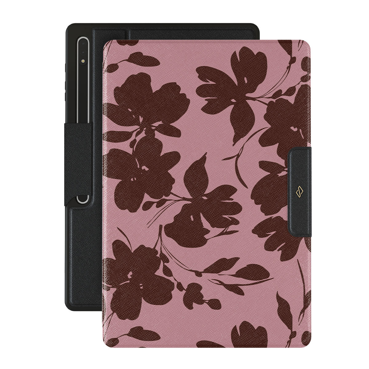 Quietly bold, our Gossip Samsung Galaxy Tab S10 Ultra folio case design speaks volumes in subtlety. A soft rosé background, layered with deep red-brown floral accents, gives off a refined, almost mysterious vibe. It's for those who let the details do the talking.