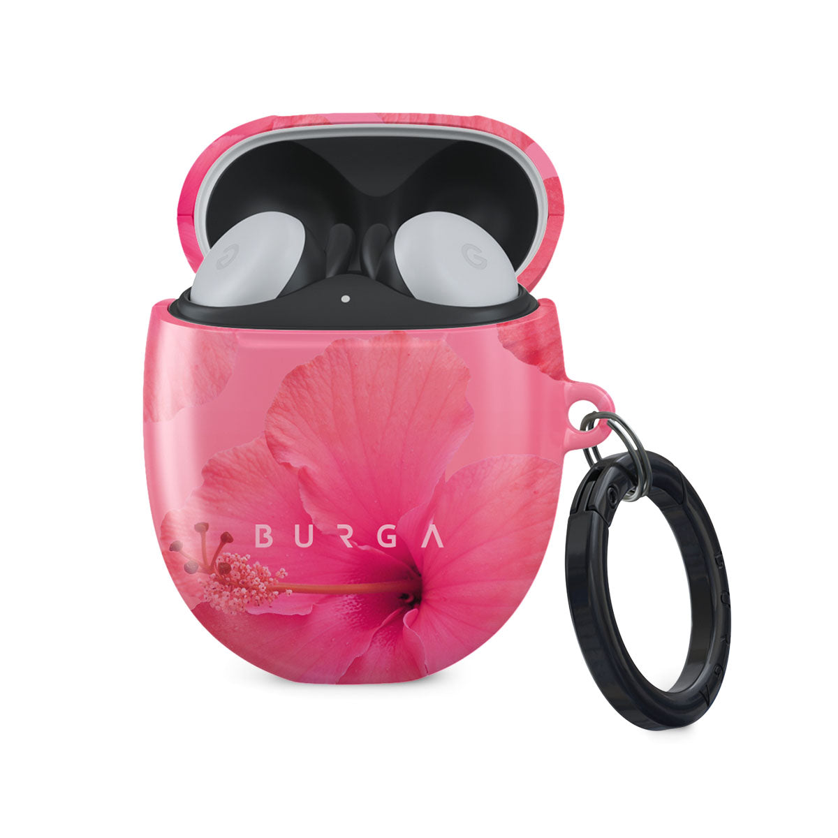 Our Island Girl Google Pixel Buds case cover design bursts with the fiery red of a hibiscus in full bloom against a dreamy pink backdrop. Perfect for those who embody the spirit of a sun-kissed island retreat.