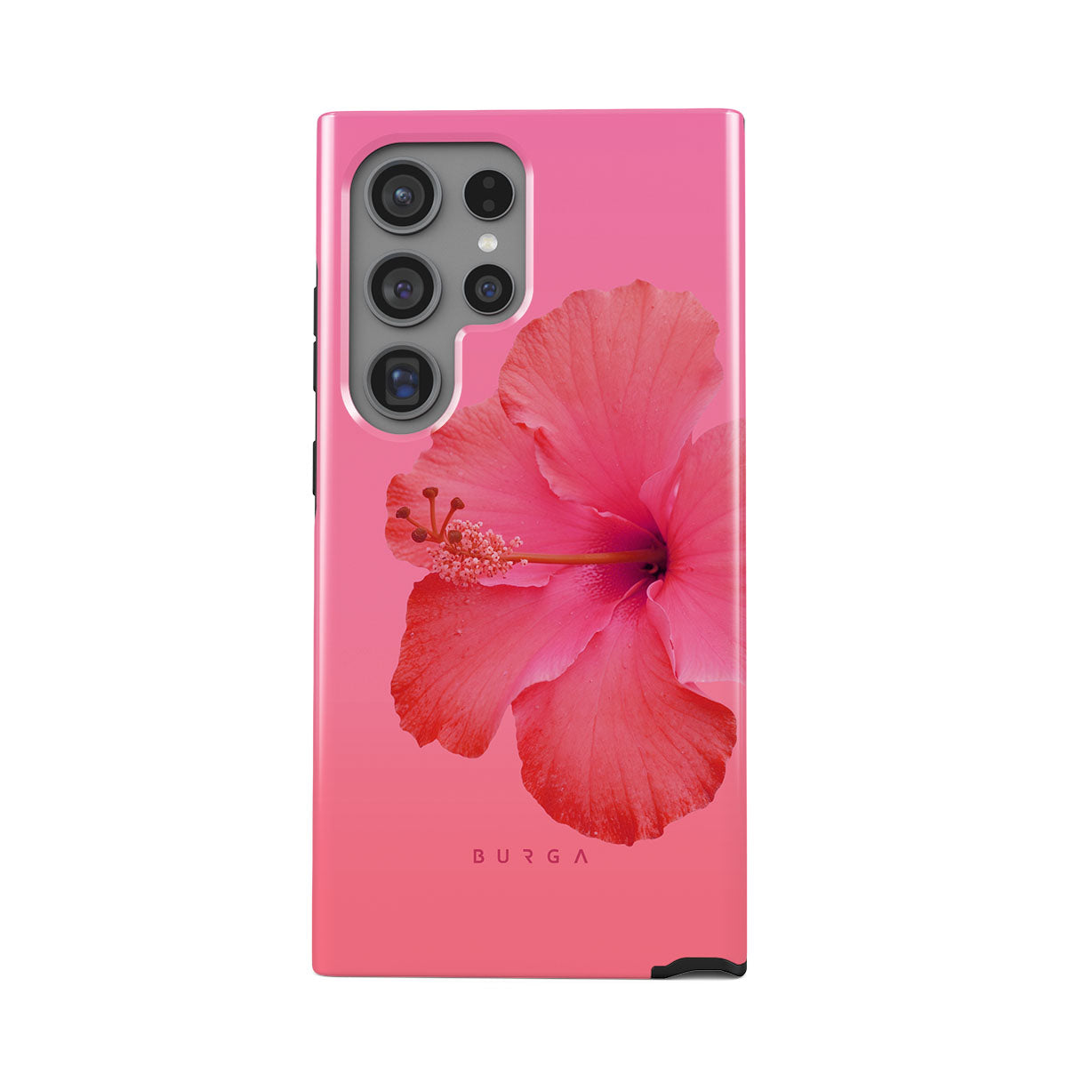 Our Island Girl Samsung Galaxy S24 Ultra phone case design bursts with the fiery red of a hibiscus in full bloom against a dreamy pink backdrop. Perfect for those who embody the spirit of a sun-kissed island retreat.