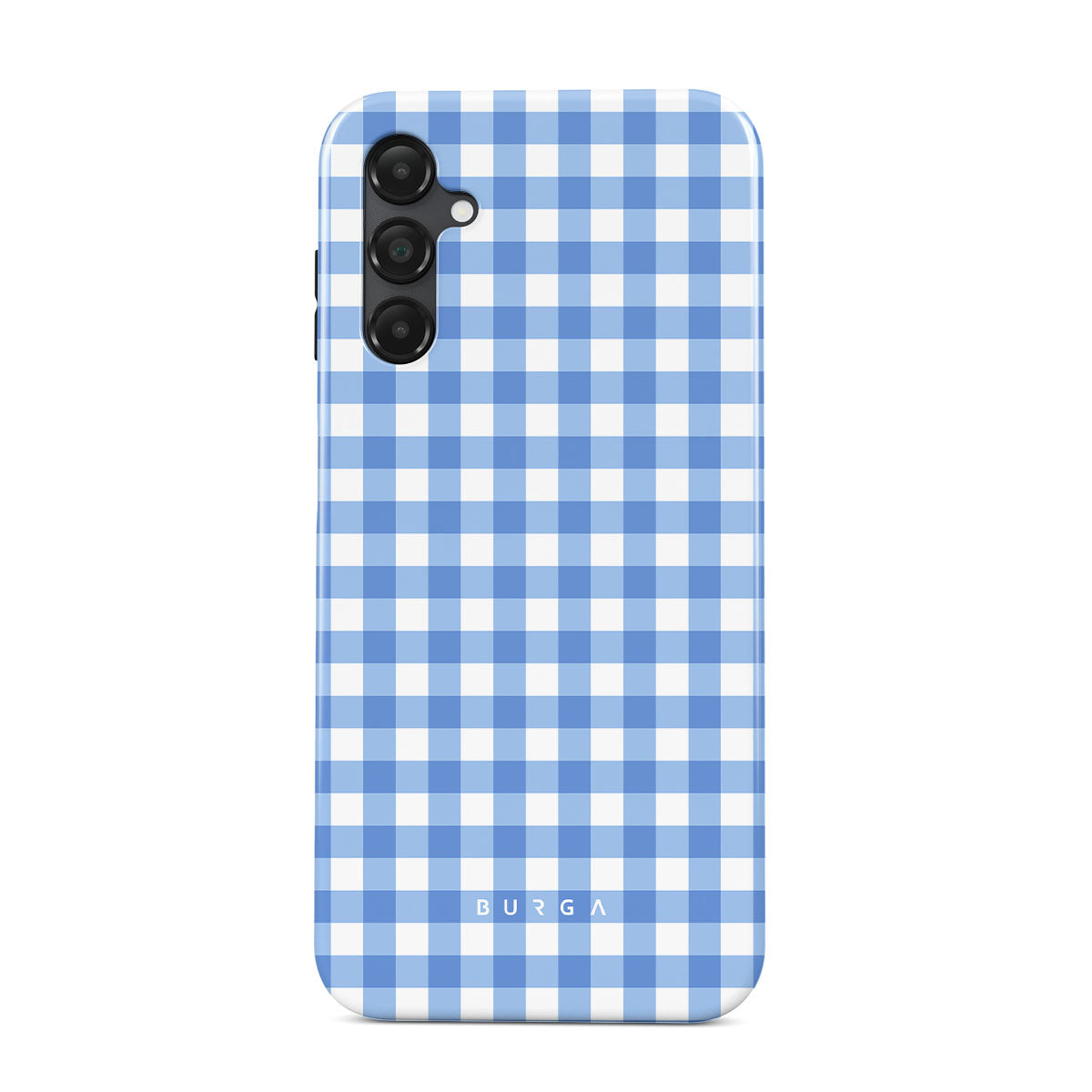 Crisp blue checks are your invitation to lay on the grass, look up at the sky, and find shapes in the clouds—simple joys that make any day lovely. That’s our Lovely Day Samsung Galaxy A25 phone case design.