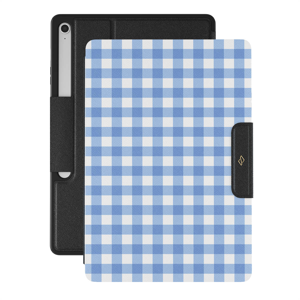 Crisp blue checks are your invitation to lay on the grass, look up at the sky, and find shapes in the clouds—simple joys that make any day lovely. That’s our Lovely Day Samsung Galaxy Tab S10+ FE folio case design.