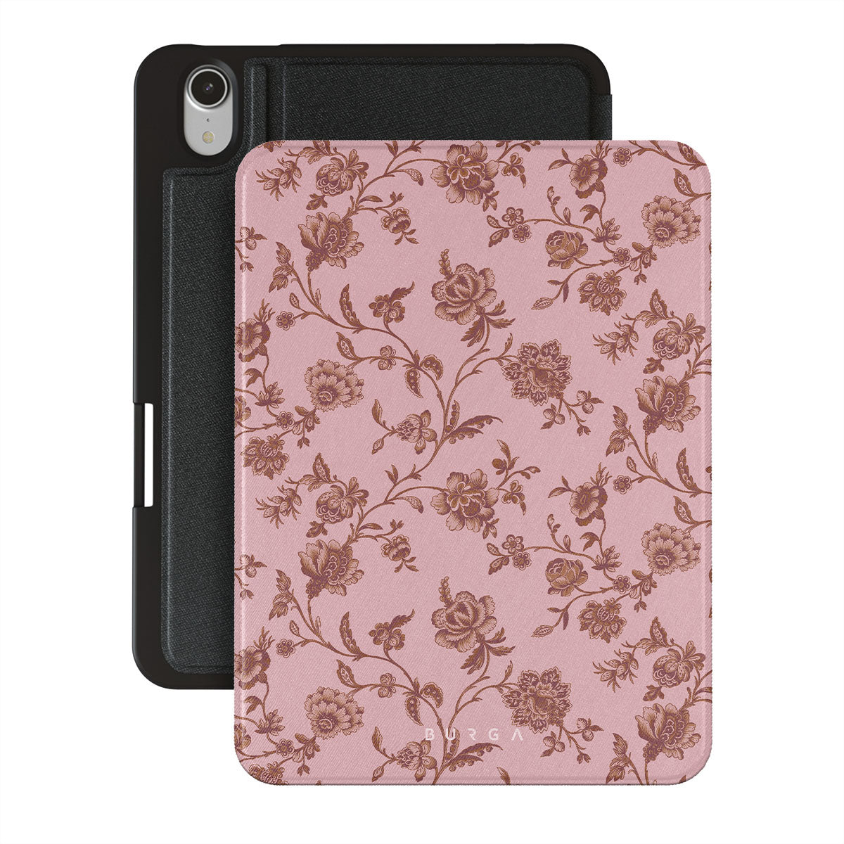 The Lover iPad Mini 8.3 (A17 Pro/6th Gen) 2021 folio case design: because you're a Lover, not a fighter. Delicate floral motifs across a soft pink background capture the essence of timeless beauty and rustic elegance. Perfect for modern-day cowgirls with a vintage heart.