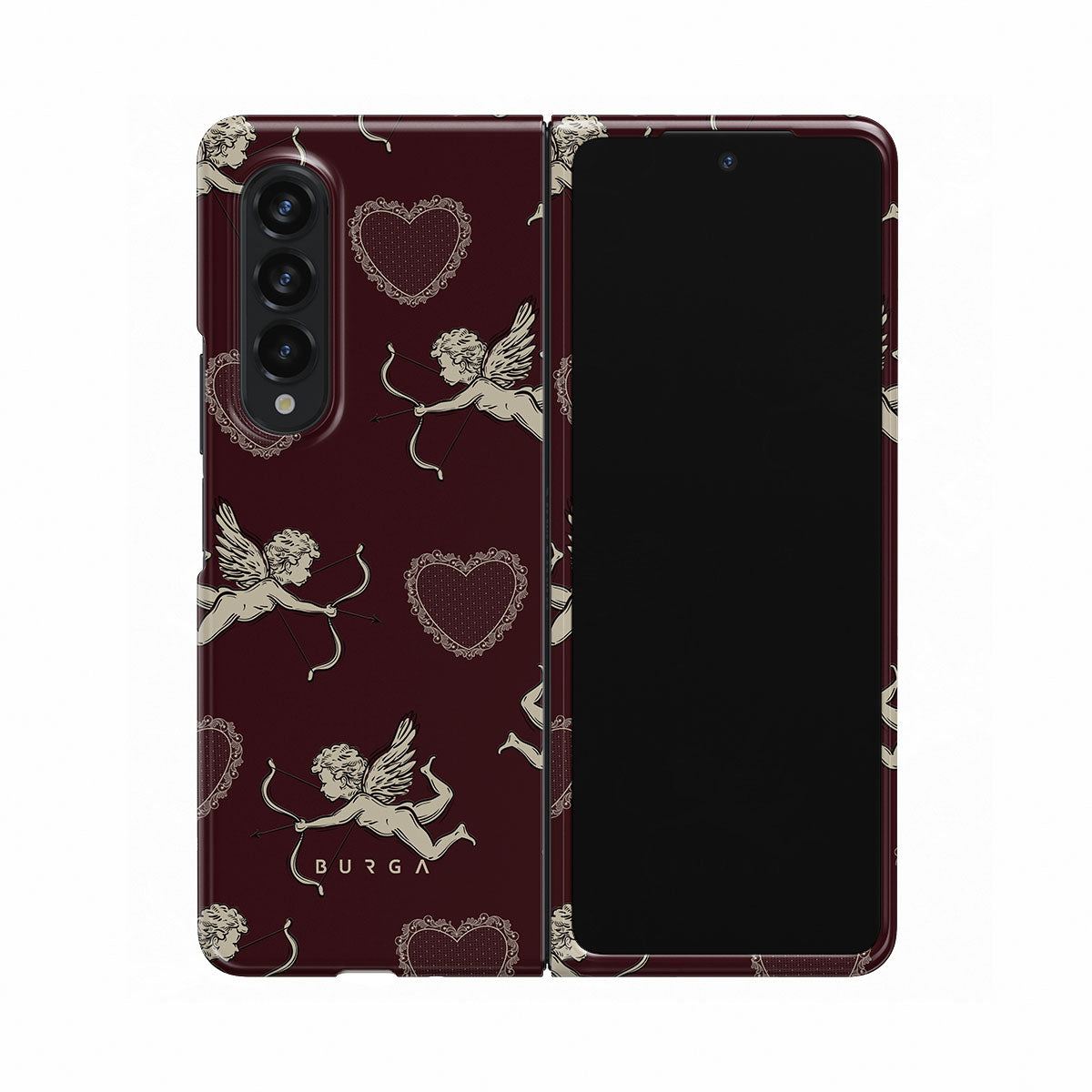This Samsung Galaxy Z Fold 3 phone case design captures the dizzy rush of falling in love—the playful flutter of Cupids and the steady beat of crimson hearts. Lovestruck is a celebration of passion’s first spark, that wild, uncontainable energy that makes your heart race and your soul sing.
