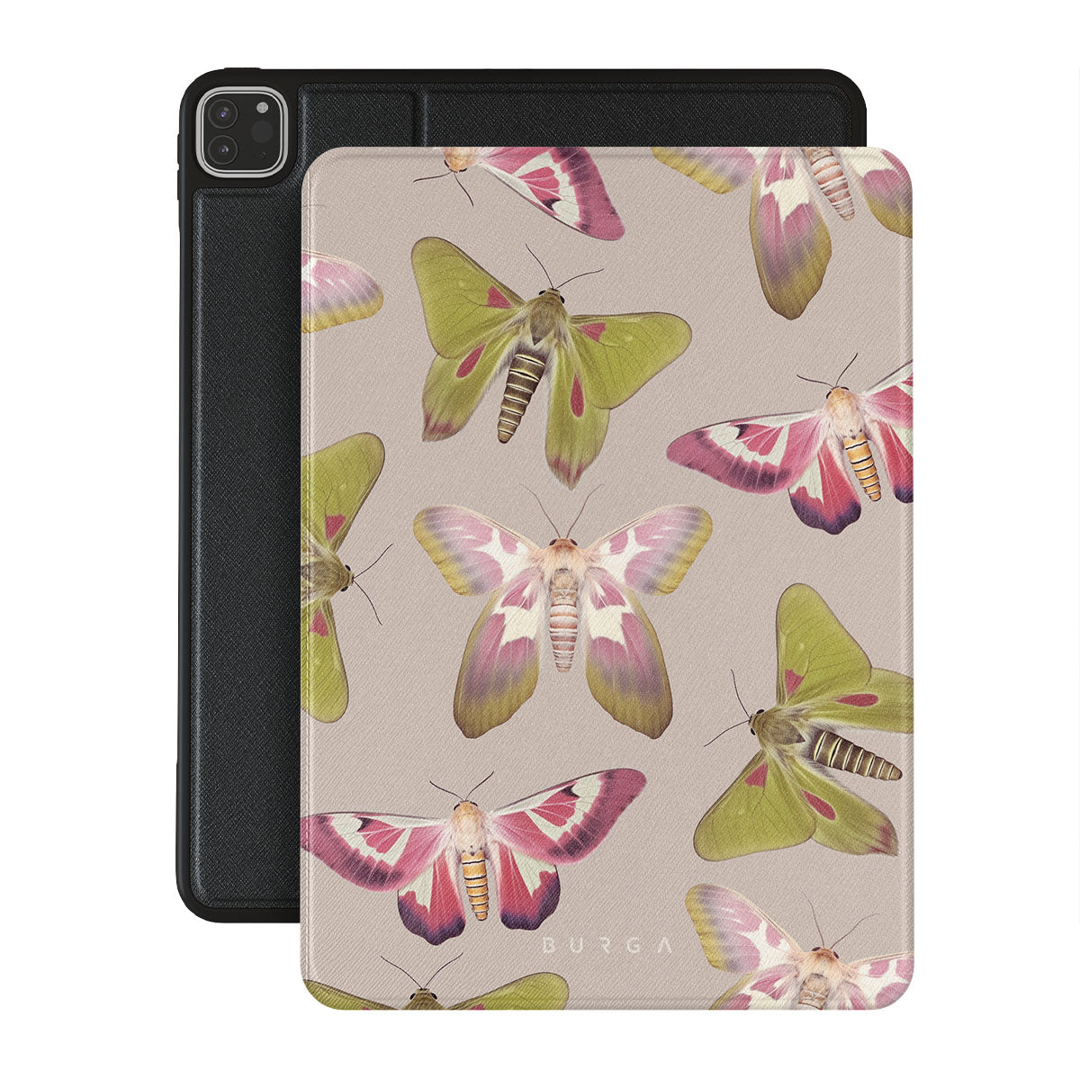 A tapestry of muted-toned moths — their wing patterns echoing tales of transformation and resilience found in nature's delicate beings. These moths, wings wide, serve as silent mentors, teaching us that every phase of life and change holds its own magic and mystery. Discover our Metamorphosis iPad Pro 11 (4th/3rd Gen) folio casedesign.