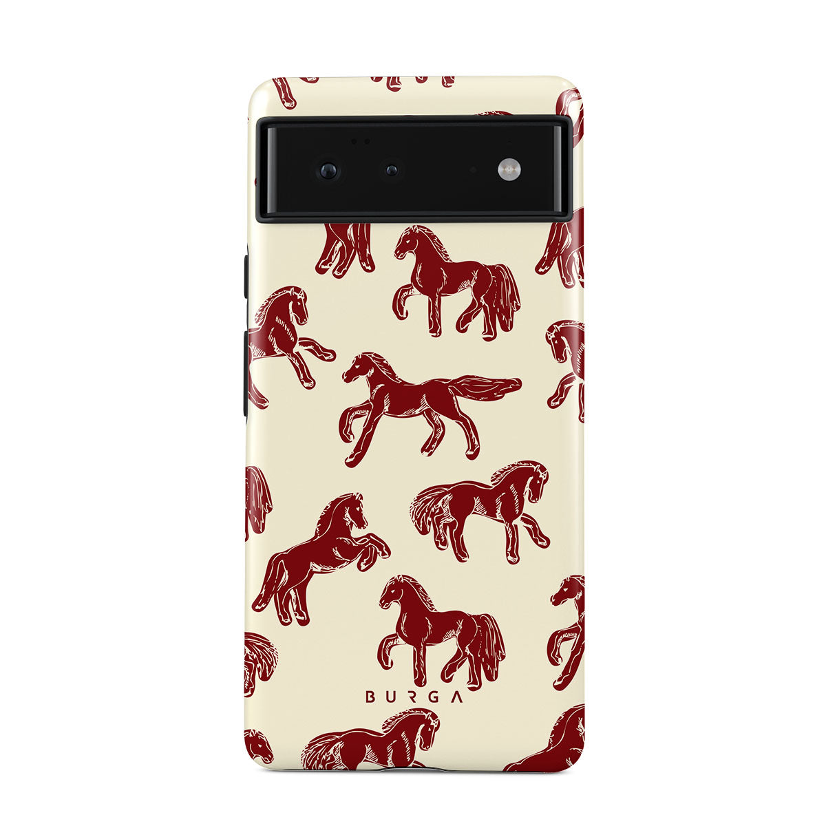 It's time to unleash your wild side with the Mustang design. Bold red horses gallop across a nude background, capturing the spirit of untamed adventure. This Google Pixel 6 phone case is perfect for the free-spirited souls ready to ride into the unknown.