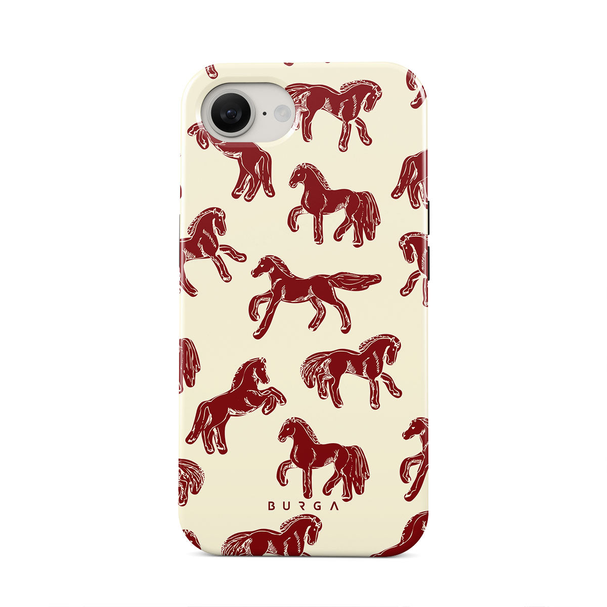 It's time to unleash your wild side with the Mustang design. Bold red horses gallop across a nude background, capturing the spirit of untamed adventure. This iPhone 16e phone case is perfect for the free-spirited souls ready to ride into the unknown.