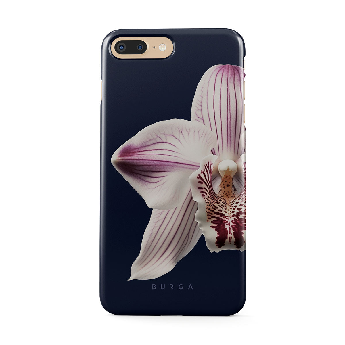 The white orchid blooms boldly upon a night sky blue, a beacon of clarity in the darkness. Our Nectar iPhone 7 Plus / 8 Plus phone case design speaks to the soul's desire to find light within, to illuminate the hidden paths of self-discovery that only reveal themselves under the cloak of introspection.