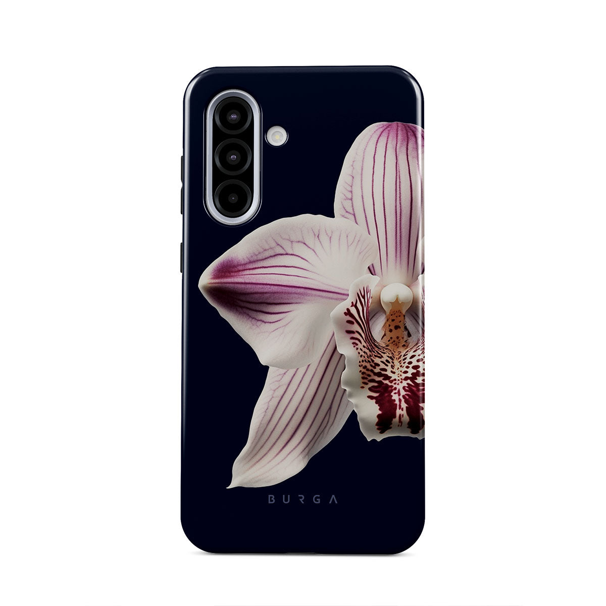 The white orchid blooms boldly upon a night sky blue, a beacon of clarity in the darkness. Our Nectar Samsung Galaxy A36 5G phone case design speaks to the soul's desire to find light within, to illuminate the hidden paths of self-discovery that only reveal themselves under the cloak of introspection.