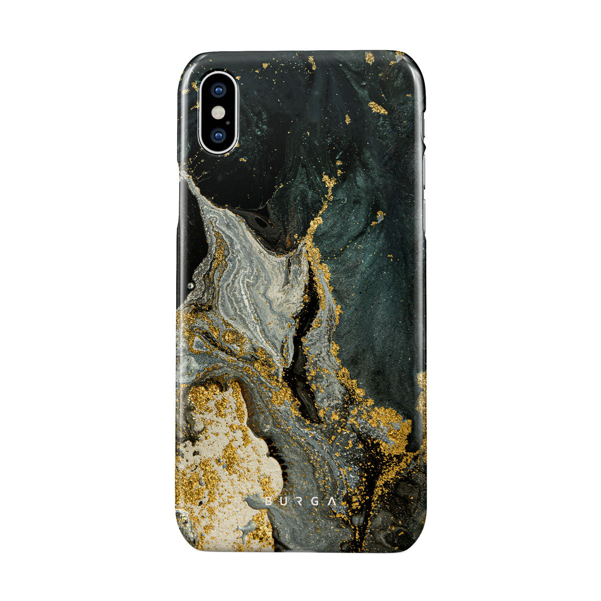 Our cute marble Northern Lights iPhone XS Max phone case showcases a combination of moss green shades in a marble pattern enriched with golden specks. The asymmetrical design reminding of a star map will add a touch of luxury and mystery to every accessory lover's collection.