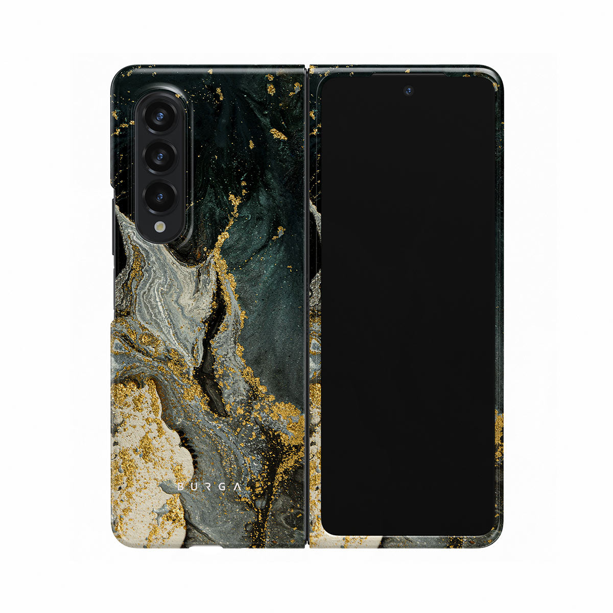 Our cute marble Northern Lights Samsung Galaxy Z Fold 3 phone case showcases a combination of moss green shades in a marble pattern enriched with golden specks. The asymmetrical design reminding of a star map will add a touch of luxury and mystery to every accessory lover's collection.