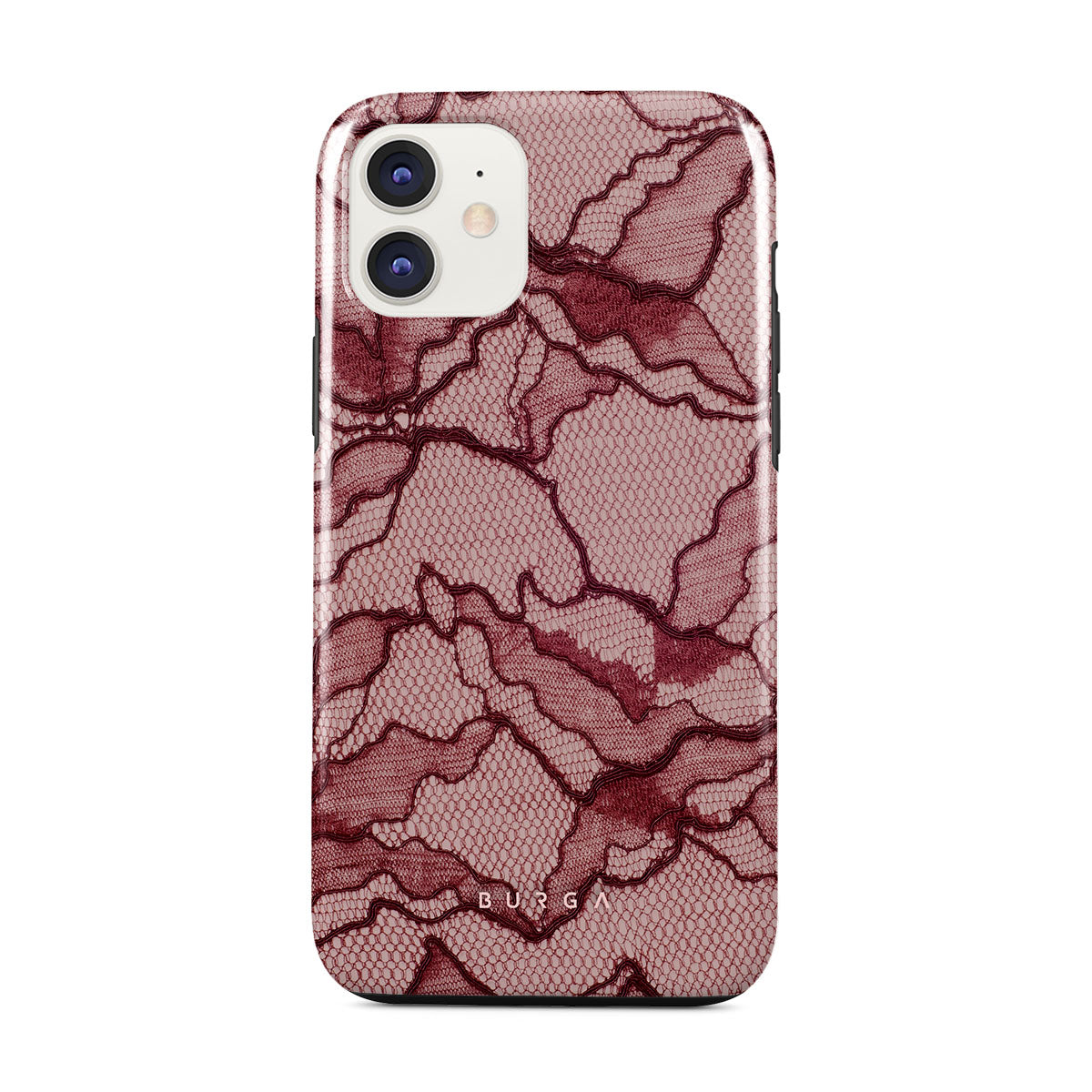 Channel your inner power with our Office Siren iPhone 11 phone case design. A soft rosé backdrop and dark pink lace blend elegance and boldness, perfect for those who make quiet yet undeniable statements with confidence.