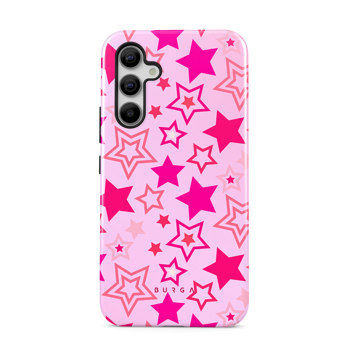 Buckle up for a starry ride, and let's twirl under the Plastic Sky. Neon stars shimmering across a cheeky rose-tinted galaxy create a playful space-disco atmosphere. Be the center of the universe with our Plastic Sky Samsung Galaxy A55 phone case!