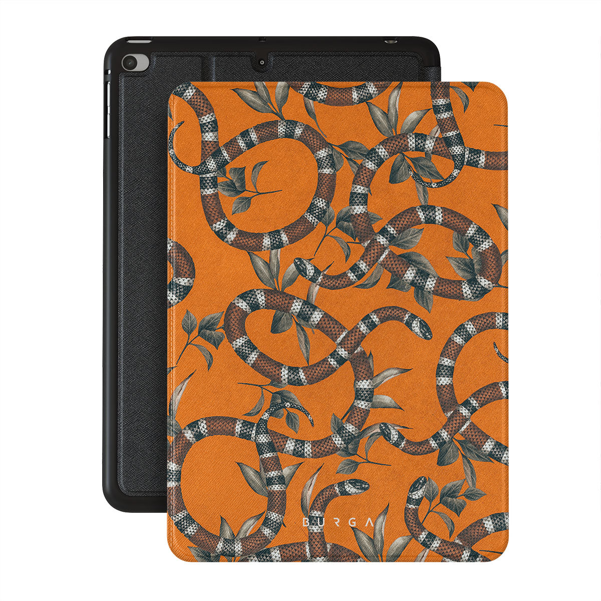 Take a bit of fierceness with yourself with our bright orange and dangerously beautiful iPad Mini 7.9 (5th Gen) folio case with a snake pattern. This case is real eye candy for fashion lovers and just as needed for those who strive to keep their iPads protected.
