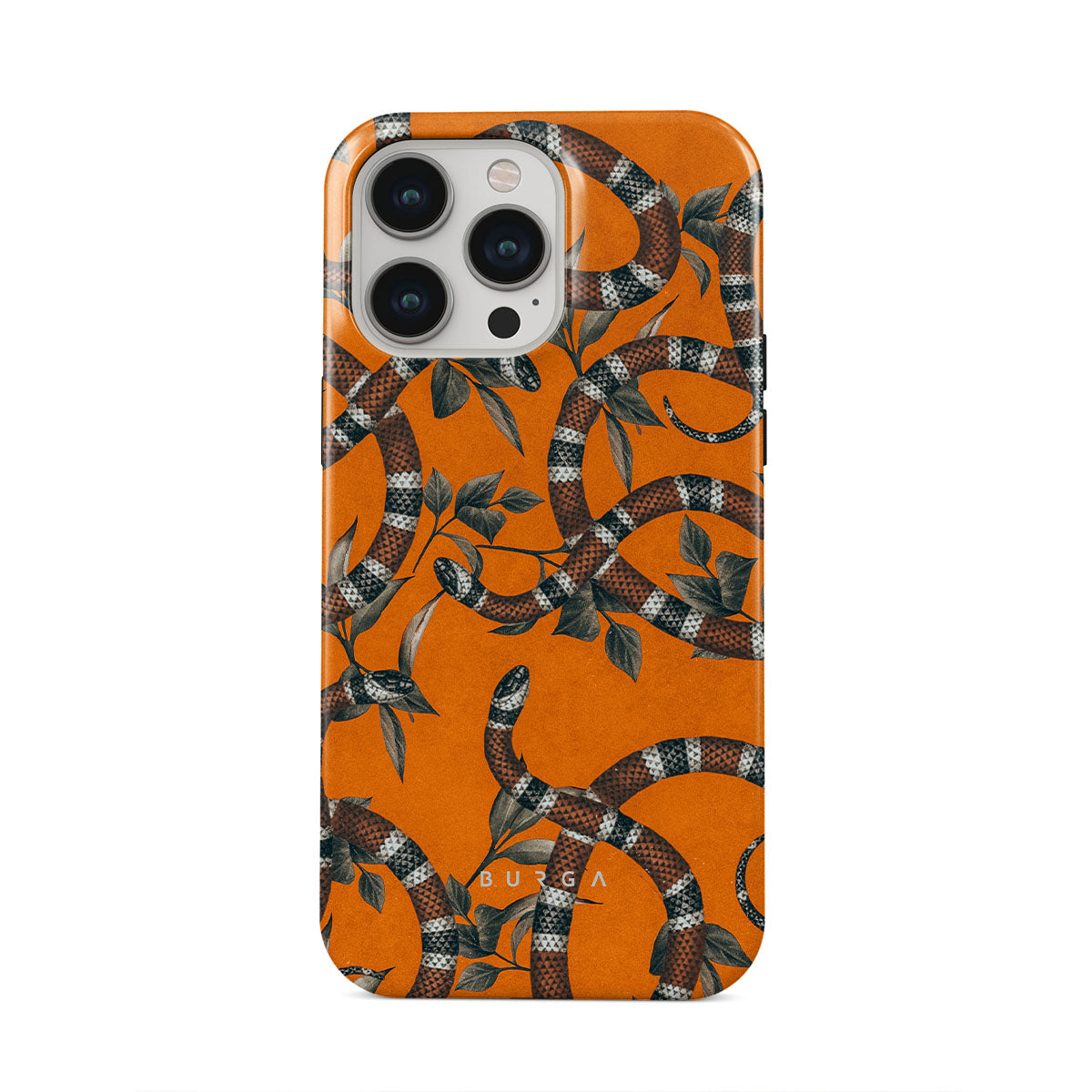Take a bit of fierceness with yourself with our bright orange and dangerously beautiful iPhone 13 Pro Max phone case with a snake pattern. This case is real eye candy for fashion lovers and just as needed for those who strive to keep their phones protected.