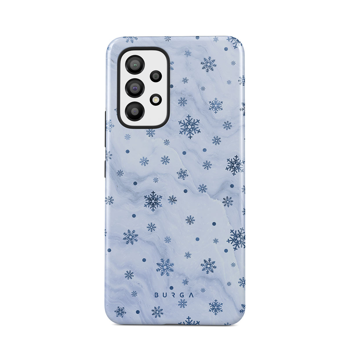 Our Ice Queen Samsung Galaxy A33 phone case combines the softest light blue marble design with a minimalistic snowflake pattern, this way creating the ever-mesmerizing effect of elegant snowflakes dance that only the magical winter days are known for. Keep your device looking elegant while keeping it safe and sound.