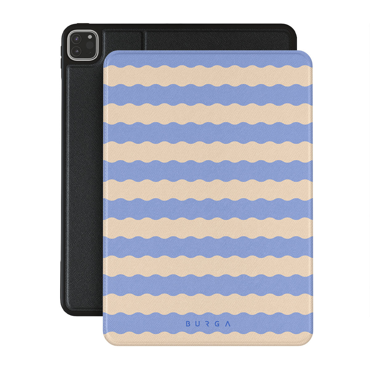 Dive into the cool, refreshing style of our Splash design–a dynamic iPad Pro 12.9 (6th/5th Gen) folio case featuring playful, wavy stripes of serene ocean blue and soft sandy beige. Perfect for those who love to make a splash with their accessories.