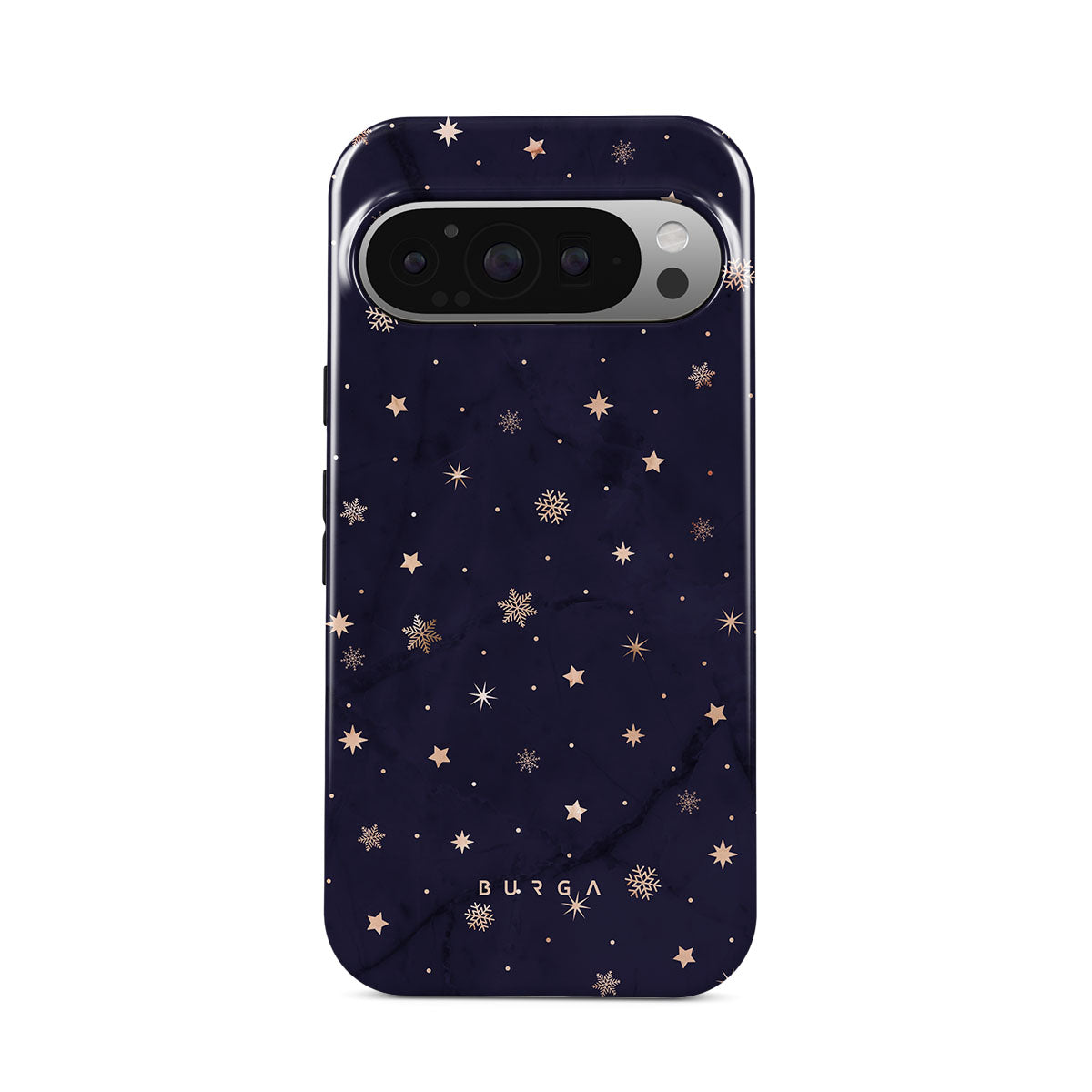 With a dreamy combination of dark blue and golden colors in the pretty star pattern found in our Midnight Kiss Google Pixel 9 Pro phone case, you can protect your phone and add a magical feel to it just in one go.
