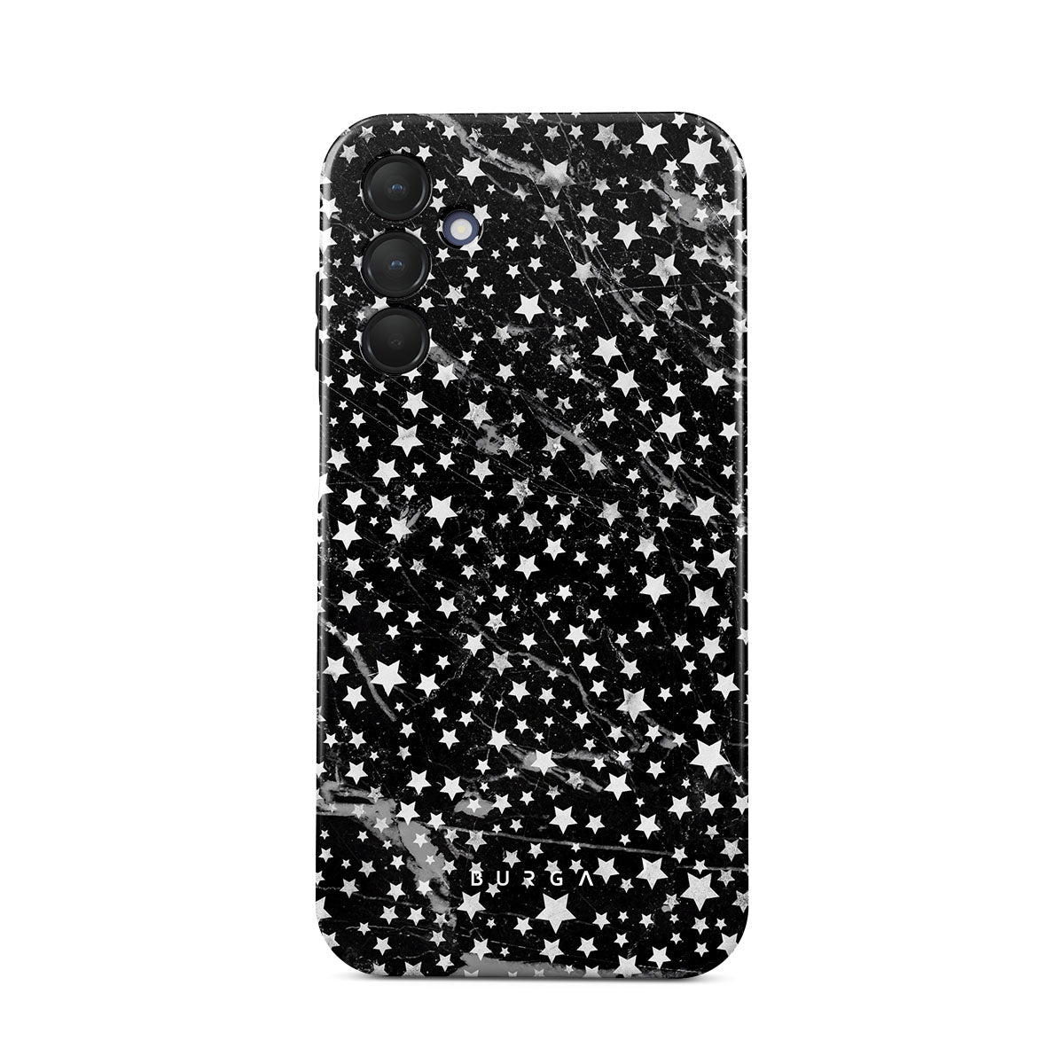 Samsung Galaxy A51 phone case is inspired by the sky above us. Here the charming star pattern meets with a trendy black and white marble. Add the unique combination to your wardrobe and transform your protective phone case into a fashion accessory.