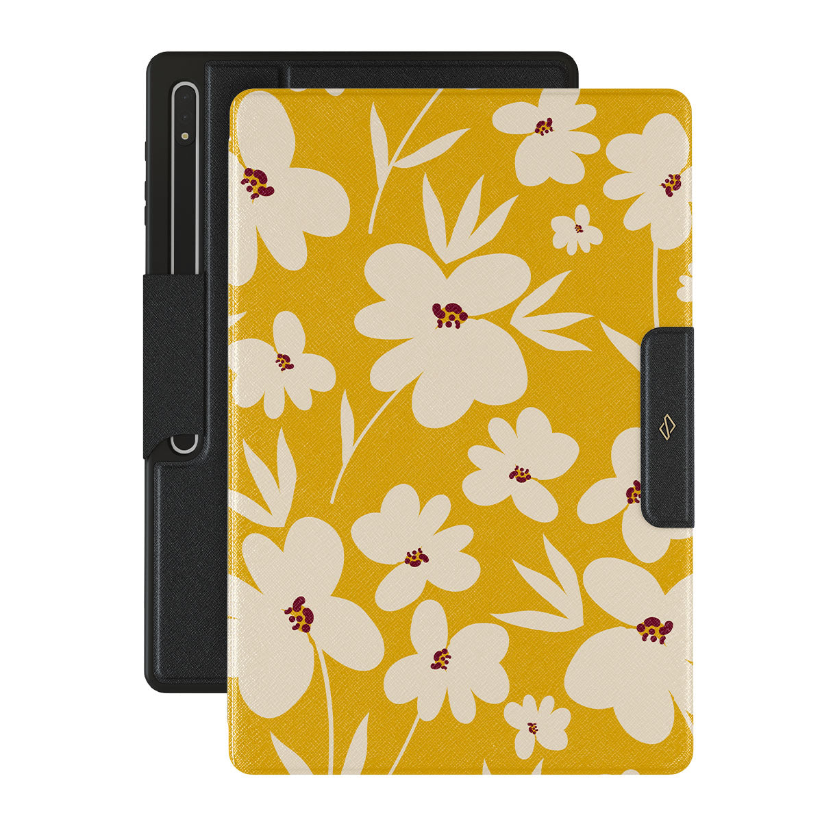 Full of fresh produce, warm rays of sunshine, and relaxing moments, our Sunday Market {Galaxy Tab Model} Samsung Galaxy Tab S10 Ultra folio case encase all of this! The vintage mustard-yellow background with beautiful creme flowers will add that soft floral touch to your wardrobe while protecting your device from unexpected falls!