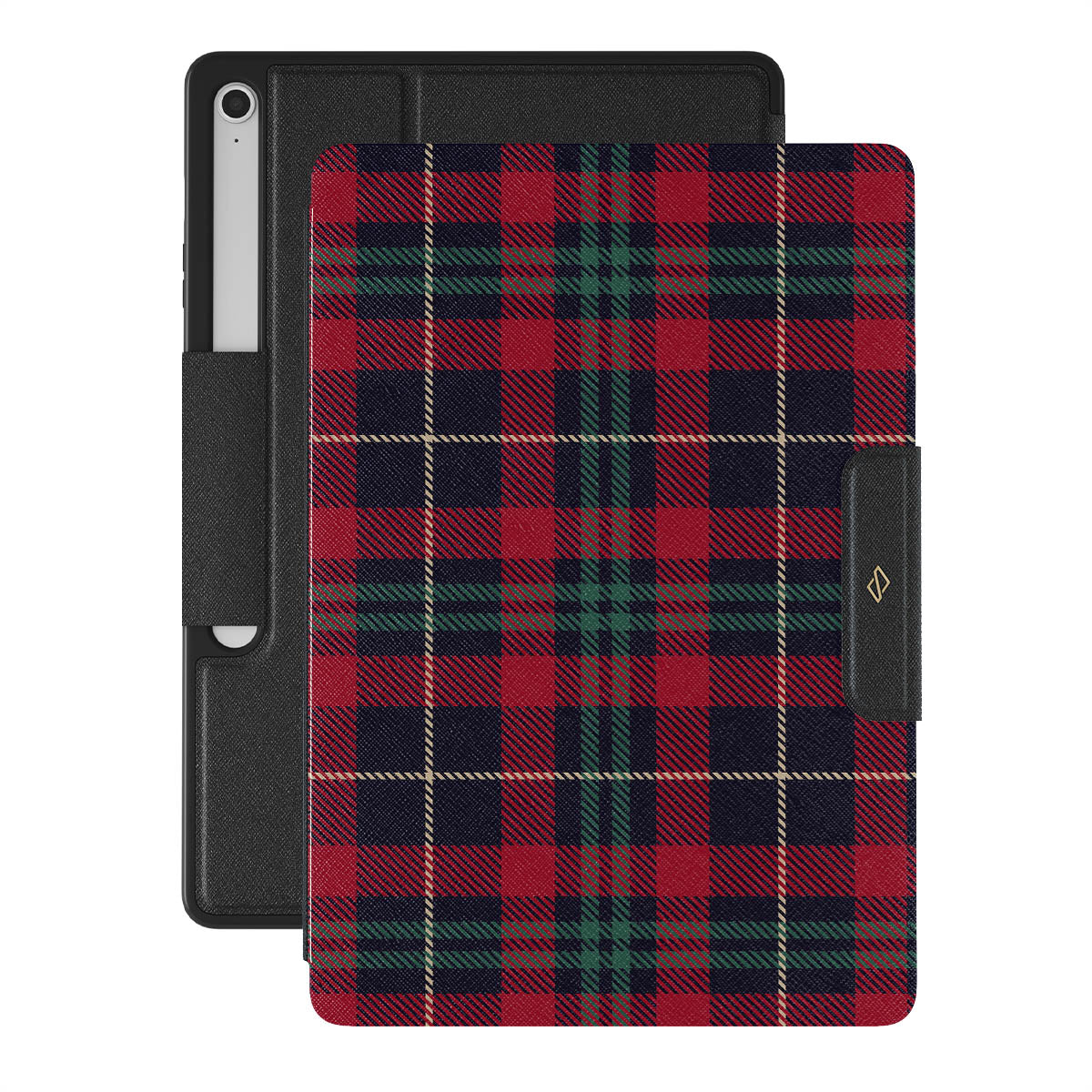 Our Sweater Weather design blends the classic appeal of plaid with the cozy comfort of a holiday sweater, featuring deep reds, navy, and greens. This timeless pattern keeps your Samsung Galaxy Tab S10+ FE folio case snug and stylish, echoing enduring elegance that lasts all year round.