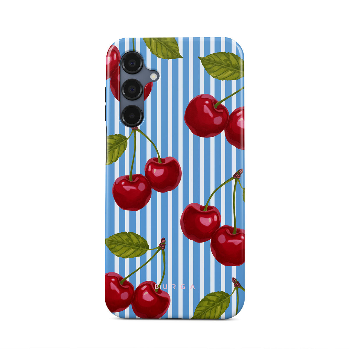 Cherries dangle like earrings from blue skies, a fun reminder of that first bite of summer, juicy and bursting with laughter. Meet our Sweet Moment Samsung Galaxy A16 phone case design.