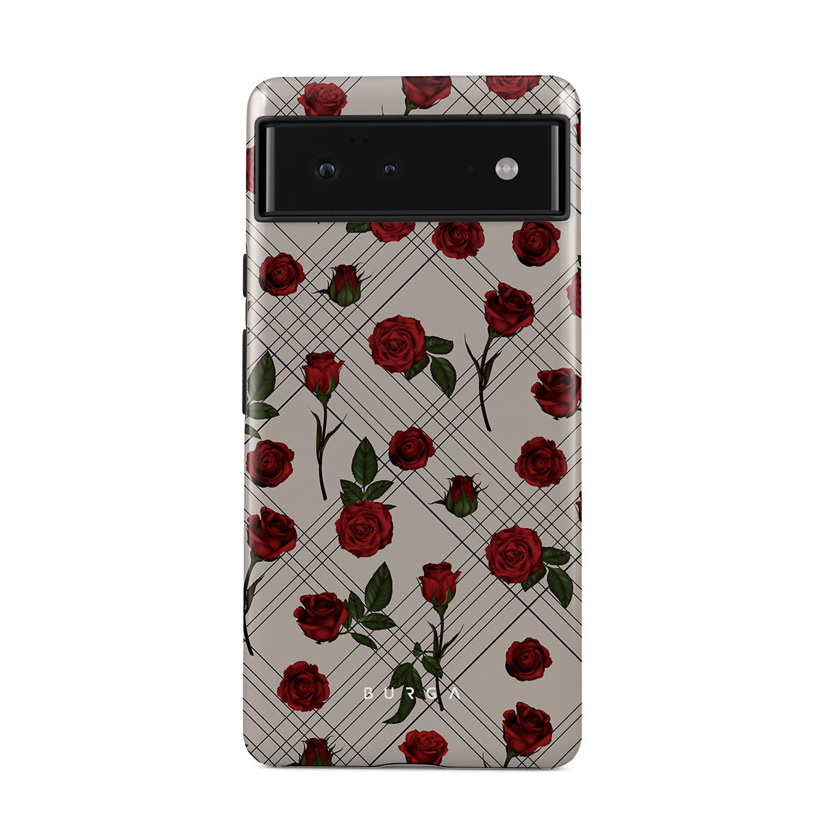 Embrace the subtle rebellion of our Sweet Sin Google Pixel 6 phone case design. On a muted nude-gray canvas, scattered small red roses hint at passions hidden beneath the surface. A design that balances the delicate with the daring. Crafted for those who find beauty in the unexpected and wear their edge with elegance.