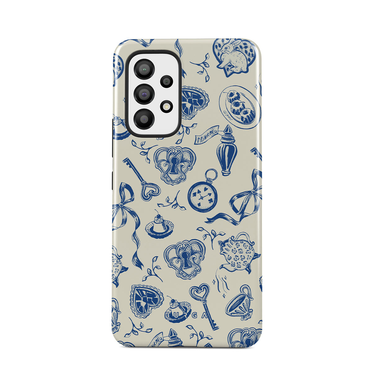 The Tea Party Samsung Galaxy A33 phone case design is a porcelain puzzle—ribbons tangled, time warped, rules rewritten. Sit down, pour a cup, but don’t expect things to make sense. They never do.