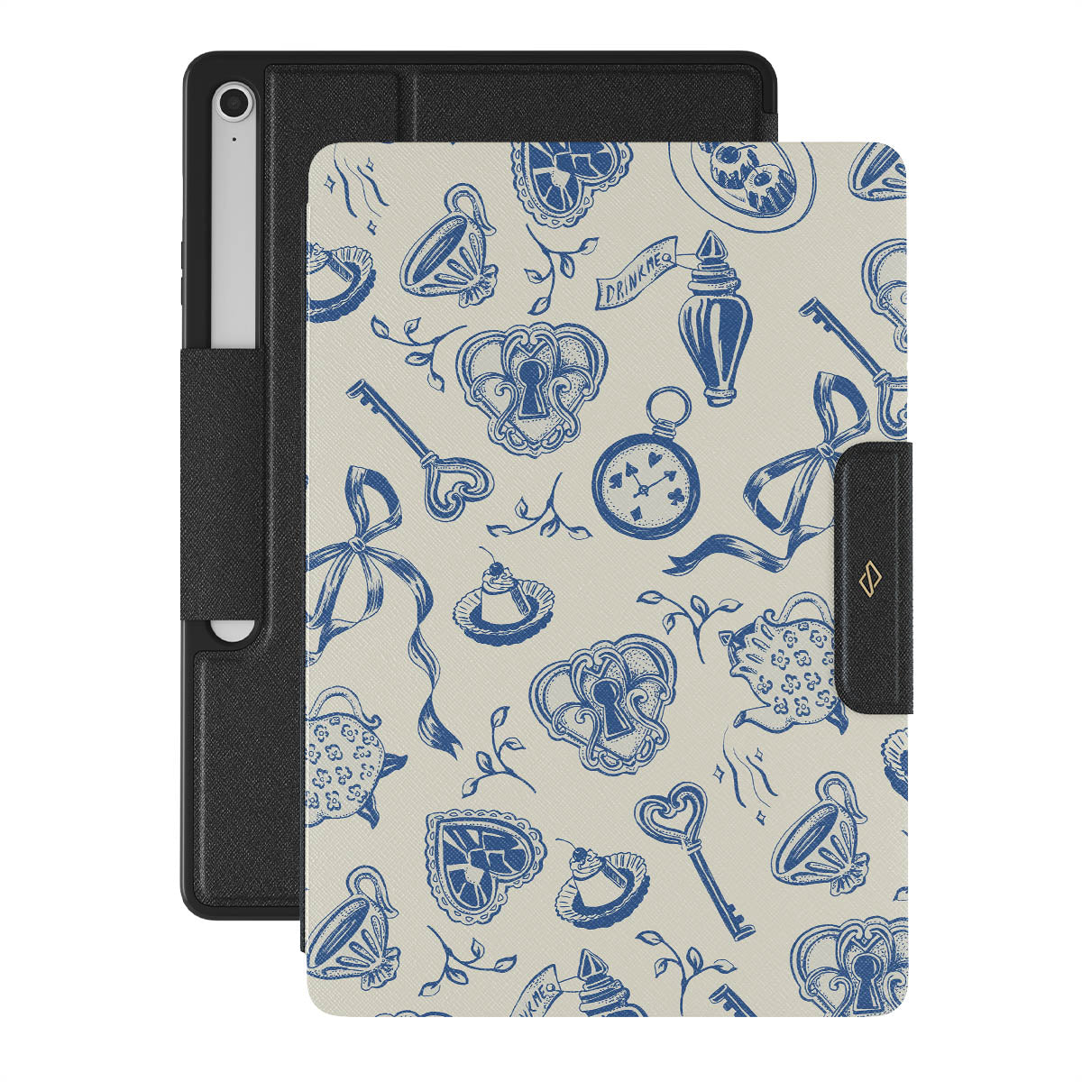 The Tea Party Samsung Galaxy Tab S10+ FE folio case design is a porcelain puzzle—ribbons tangled, time warped, rules rewritten. Sit down, pour a cup, but don’t expect things to make sense. They never do.