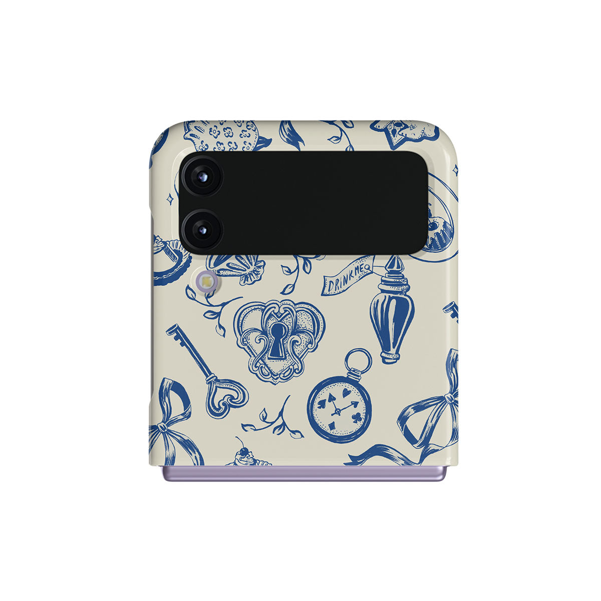 The Tea Party Samsung Galaxy Z Flip 4 phone case design is a porcelain puzzle—ribbons tangled, time warped, rules rewritten. Sit down, pour a cup, but don’t expect things to make sense. They never do.