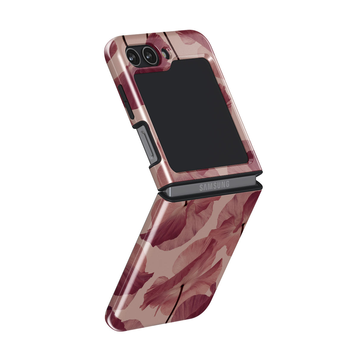 Capture the sweetness of a first love with Tender Kiss — a design that combines the delicate touch of petals on a soft pink background. This Samsung Galaxy Z Flip 5 phone case design is crafted for those who cherish the tender moments and the dreamy whispers of a romantic past.