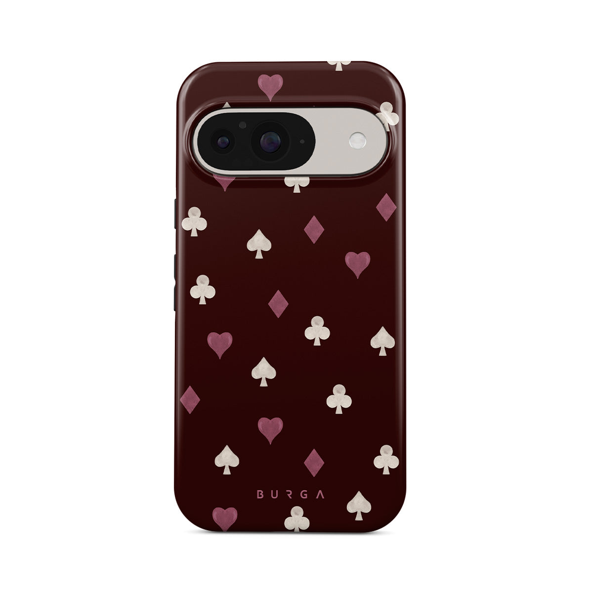 Nothing is as it appears. Hearts, clubs, diamonds, and spades—stacked in your favor or playing against you? This Google Pixel 10 Pro XL phone case design features a rich burgundy background and minimalist suits that make for a game where the rules are constantly shifting.