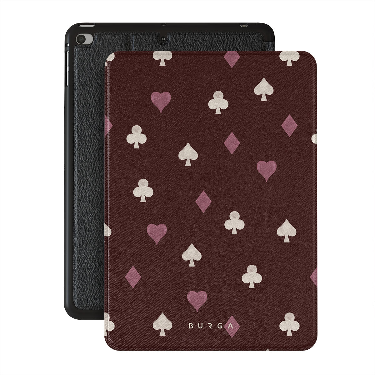Nothing is as it appears. Hearts, clubs, diamonds, and spades—stacked in your favor or playing against you? This iPad Mini 7.9 (5th Gen) folio case design features a rich burgundy background and minimalist suits that make for a game where the rules are constantly shifting.