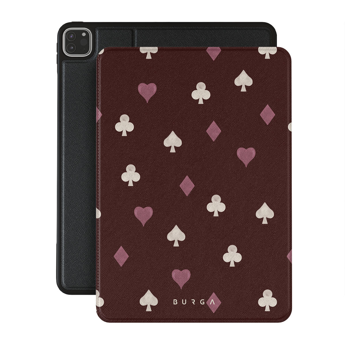 Nothing is as it appears. Hearts, clubs, diamonds, and spades—stacked in your favor or playing against you? This iPad Pro 12.9 (6th/5th Gen) folio case design features a rich burgundy background and minimalist suits that make for a game where the rules are constantly shifting.