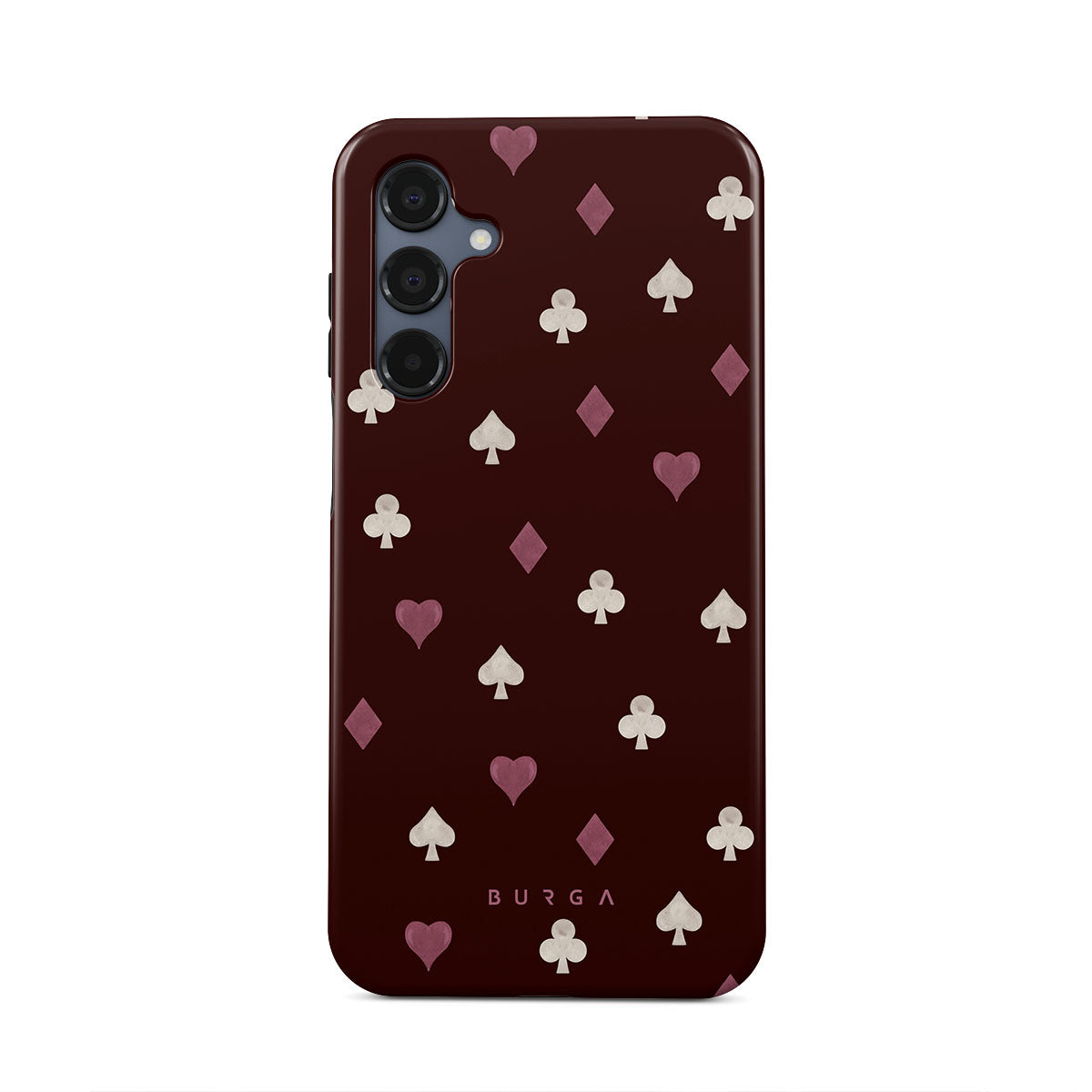 Nothing is as it appears. Hearts, clubs, diamonds, and spades—stacked in your favor or playing against you? This Samsung Galaxy A16 phone case design features a rich burgundy background and minimalist suits that make for a game where the rules are constantly shifting.