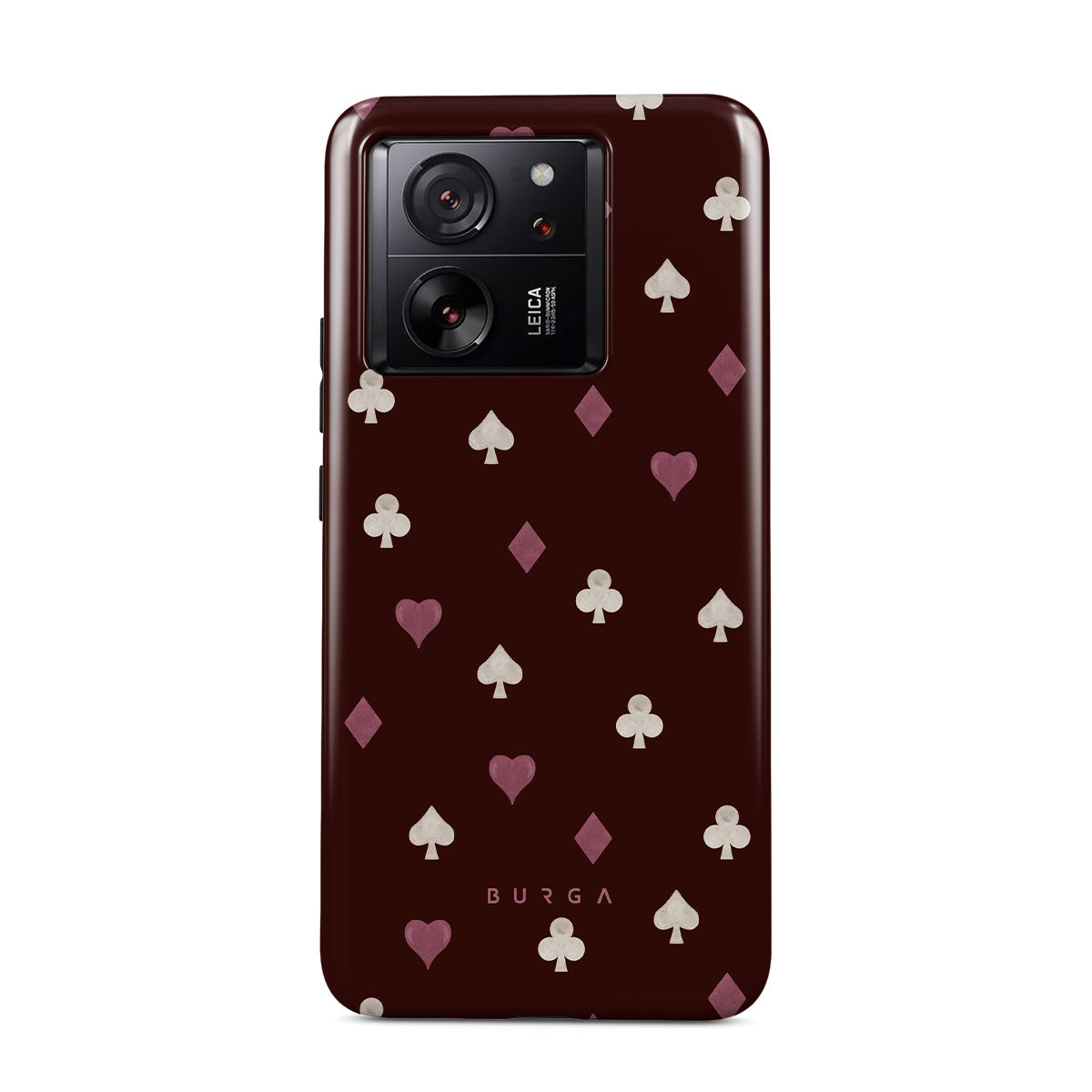 Nothing is as it appears. Hearts, clubs, diamonds, and spades—stacked in your favor or playing against you? This Xiaomi 13T phone case design features a rich burgundy background and minimalist suits that make for a game where the rules are constantly shifting.