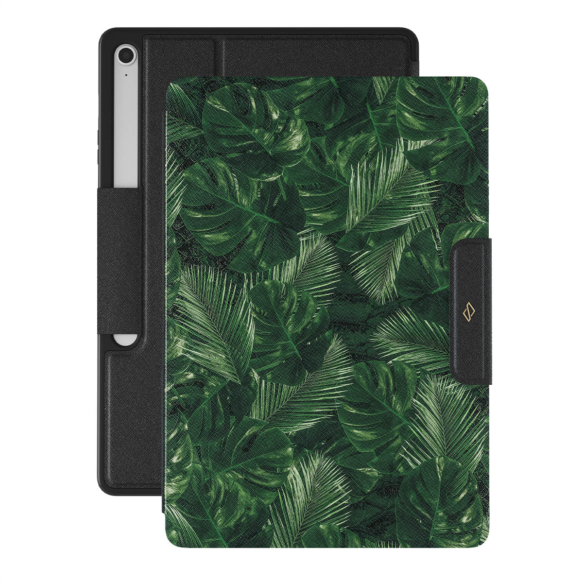 Enter the World of Jungles with our Tropical Garden Samsung Galaxy Tab S10+ FE folio case cover showcasing mesmerizing greens. Palm fronds and Monstera leaves' unique patterns will add a tropical touch to your wardrobe while offering heavy-duty protection to your Galaxy Tab.