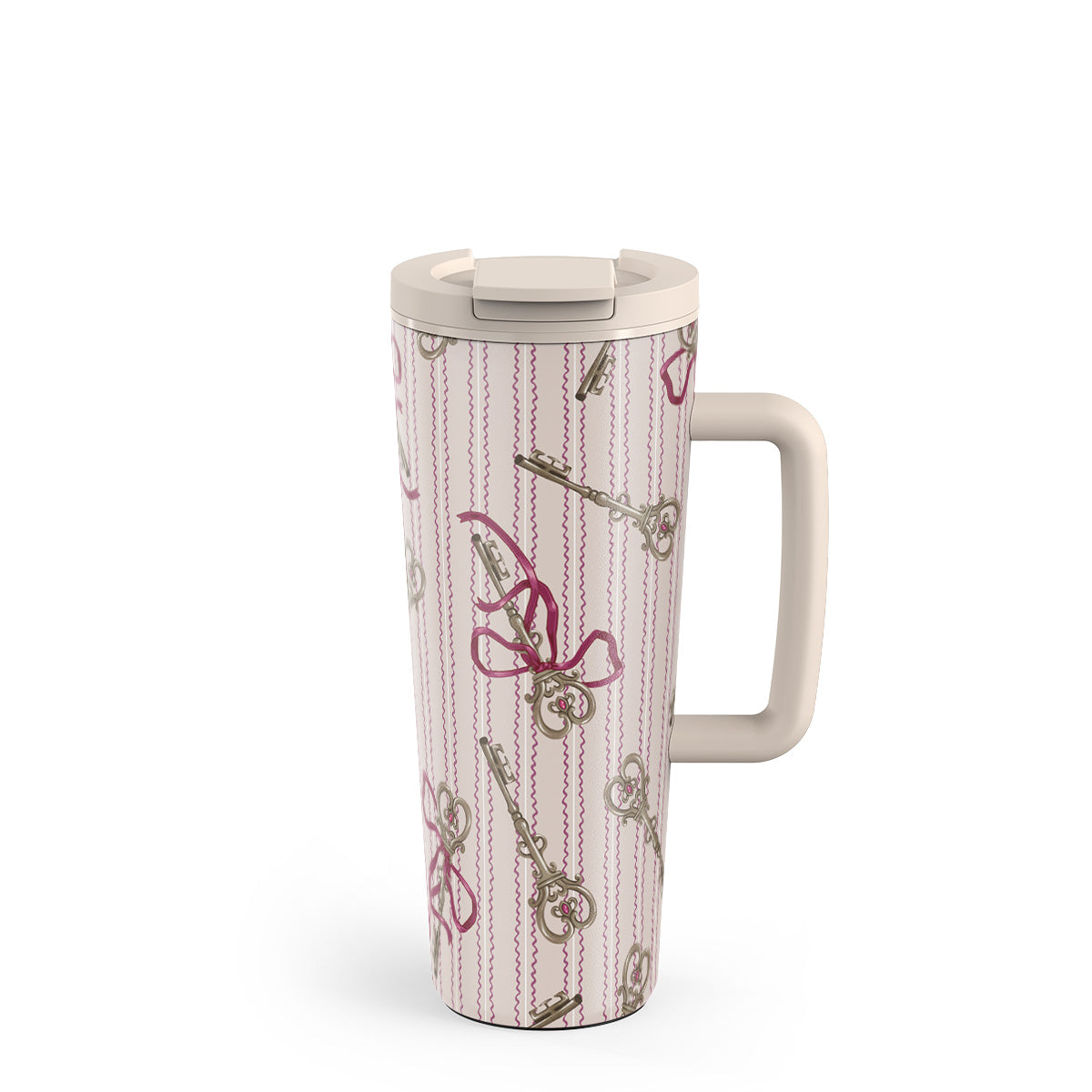 This design features: antique keys, bows, pink ribbons, striped background