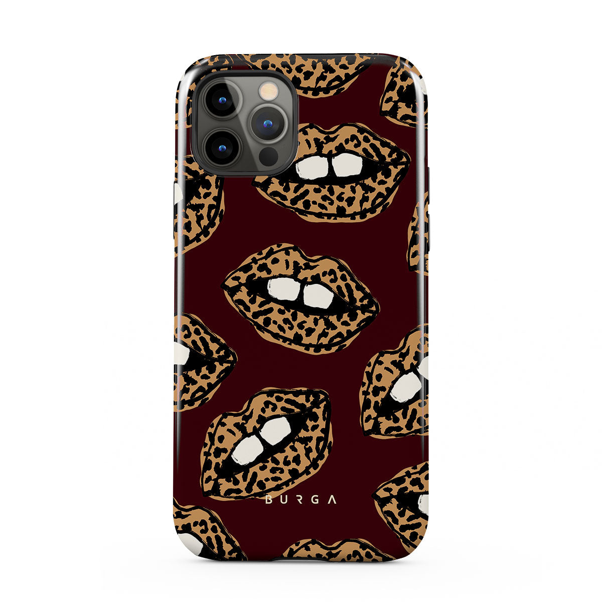 This design features: leopard print, lips, open lips, colored lips
