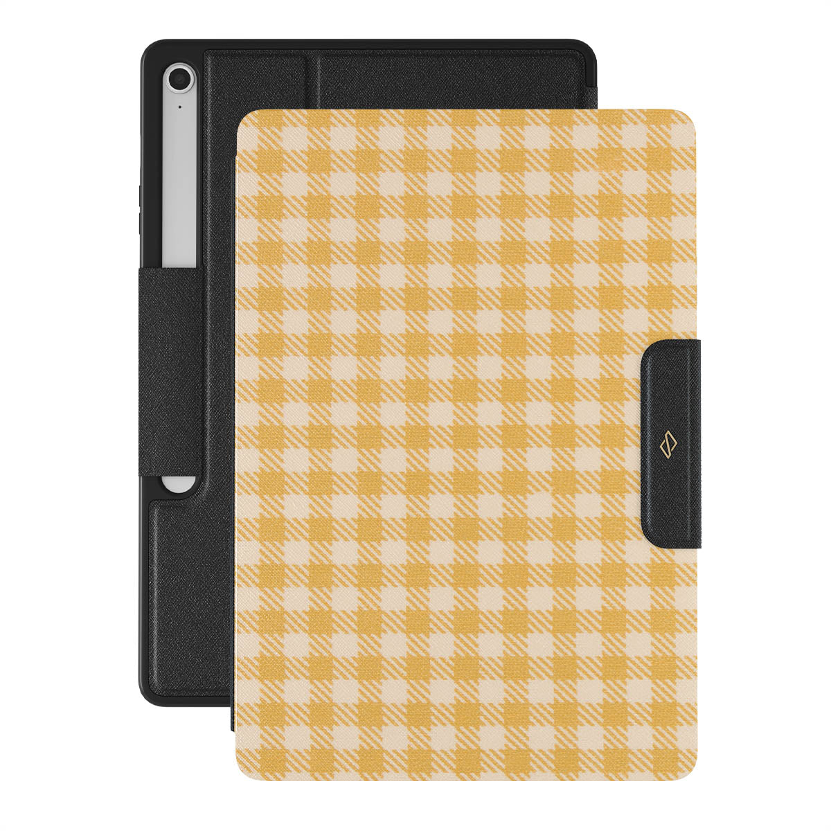 Always fashionable and always inviting, the Preppy Vichy fabric returns in our Tuscan Sun Samsung Galaxy Tab S10+ FE folio case. The brightness and warmth of this enchanting yellow plaid design indeed remind us of the always generous Tuscan Sun. You can add a piece of this playful squares pattern with you while keeping your Galaxy Tab out of harm's way!